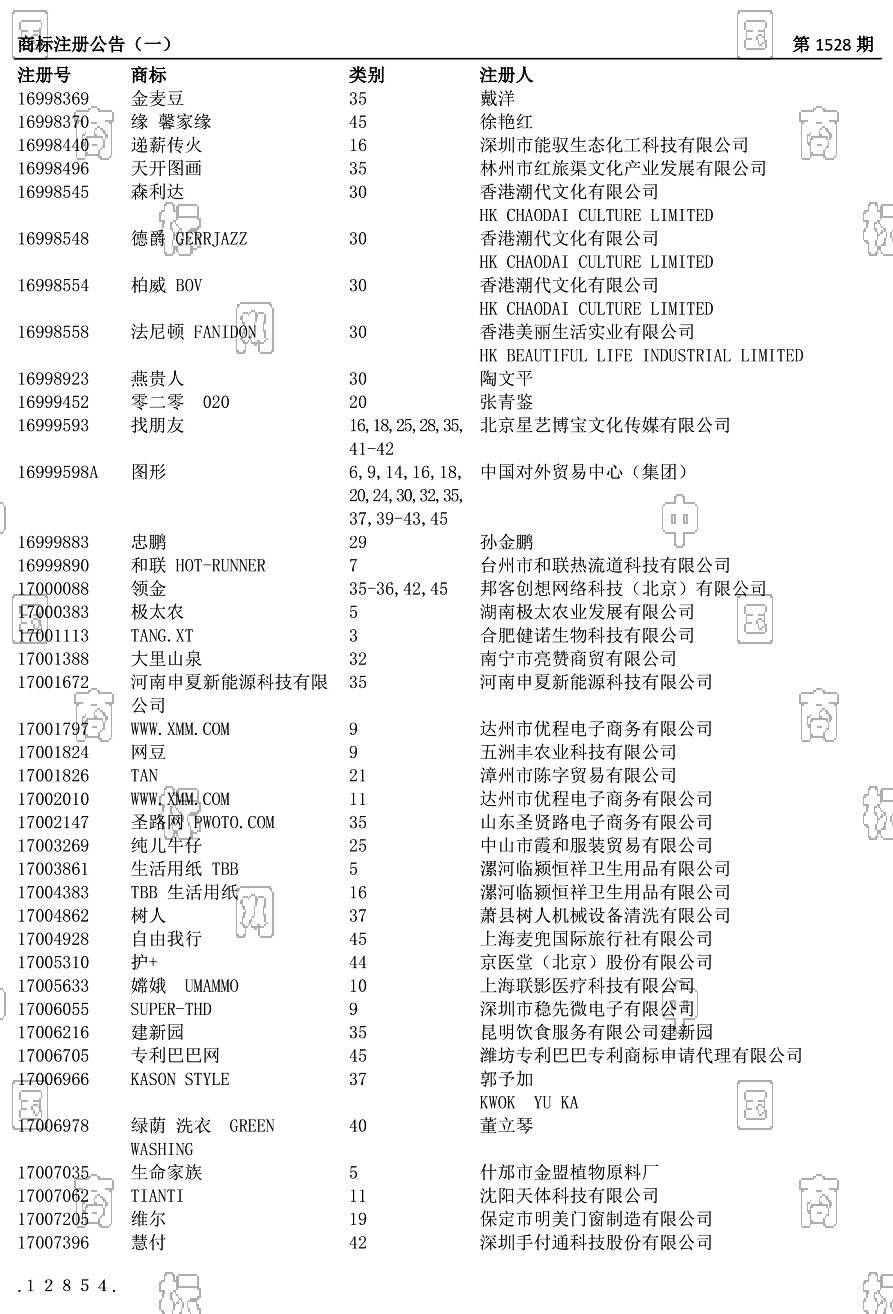 2016年11月21日,潍坊专利巴巴专利商标申请代理有限公司申请的专利巴巴网商标在第1528期获得注册公告。